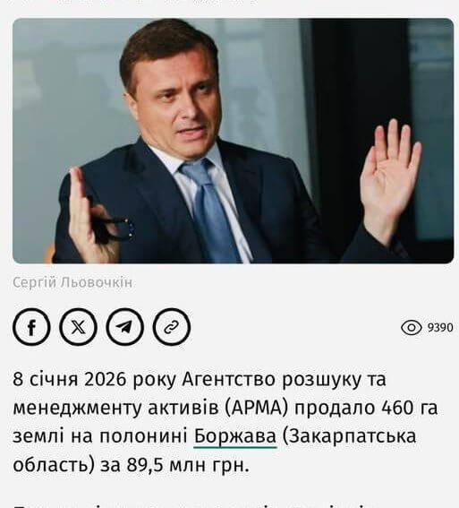 Тож не дивно, що 8 січня 2026 року АРМА продало 460 га заповідних земель на полонині Боржава в Закарпатській області аж за 89,5 млн. грн.( при цьому середня вартість сотки землі становила близько 2 тисяч гривень), а частину з них придбав саме чоловік Льовочкіної та «енергостійкий менеджер» Кличка, очільник «Київгазу» Андрій Вінграновський!